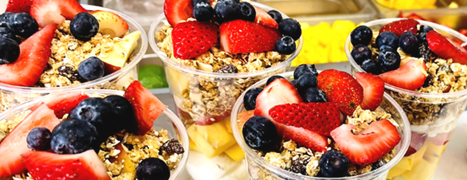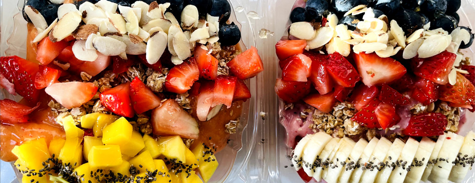 Half Watermelon filled with fruit (jicama, sandia, melon, pineapple, cucumber and strawberries) served with one large size pineapple drink.